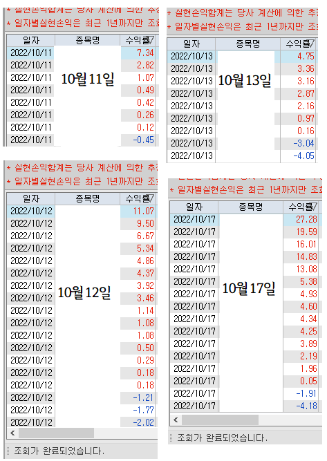 | 10월5일 오토앤12% 한컴라이프케어 3% 대모 6% 코리아에프티 외 단타매매 인증 (6) | 2022.10.05 |
